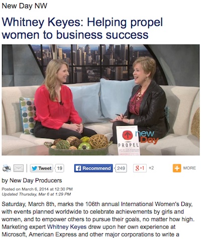 Whitney Keyes was a guest on New Day Northwest March 6, 2014, for International Women’s Day. New Day Northwest airs weekdays at 11 a.m. (PST) on Seattle’s KING 5 TV. You can see the segment with Whitney’s advice for women entrepreneurs here.