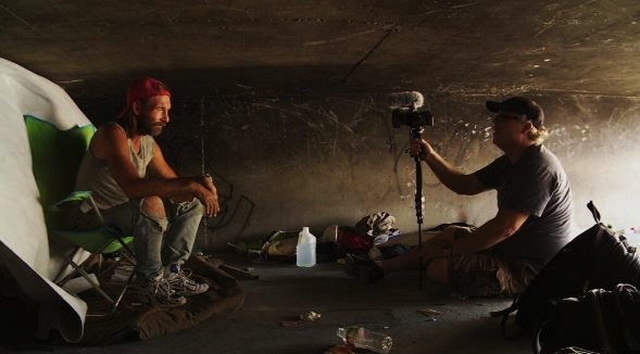A few years ago, Mark embarked on a cross-country road trip to further document these stories, and director Susanne Suffredin followed him. Susanne is an accomplished documentary filmmaker who has worked on films like the Academy Award nominee “Hoop Dreams.” Upon meeting Mark, “I was struck by the passion and crazy energy of this guy and his crazy plan,” Susanne says. “He was going to end homelessness in this country and maybe even around the world. And he was going to do it using social media and YouTube.”